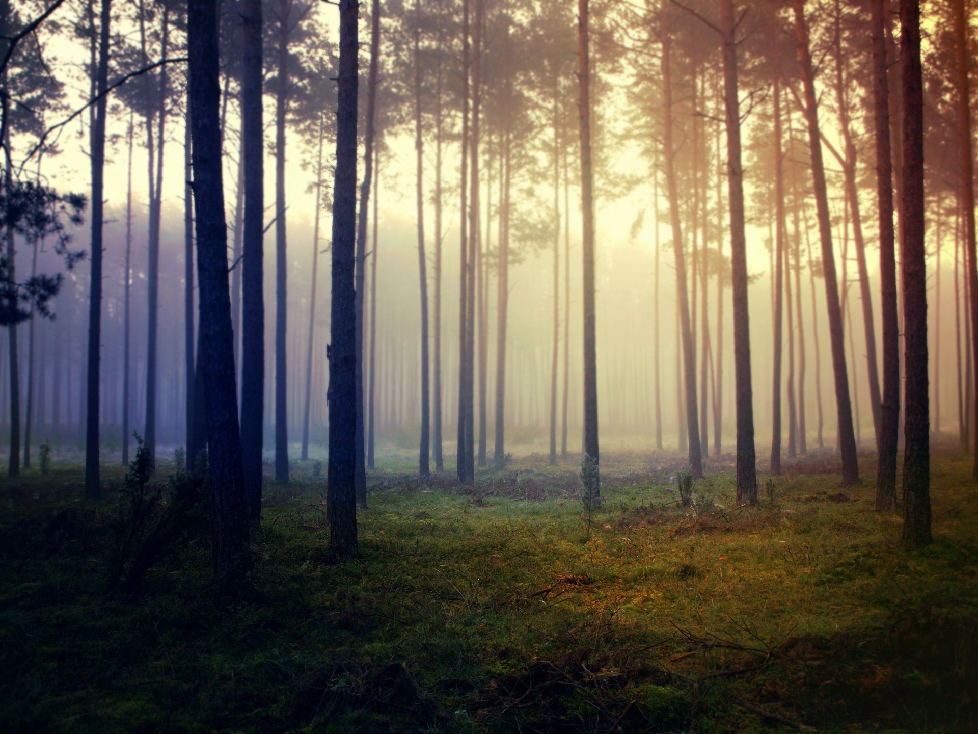 The eternal light between the trees in the forest