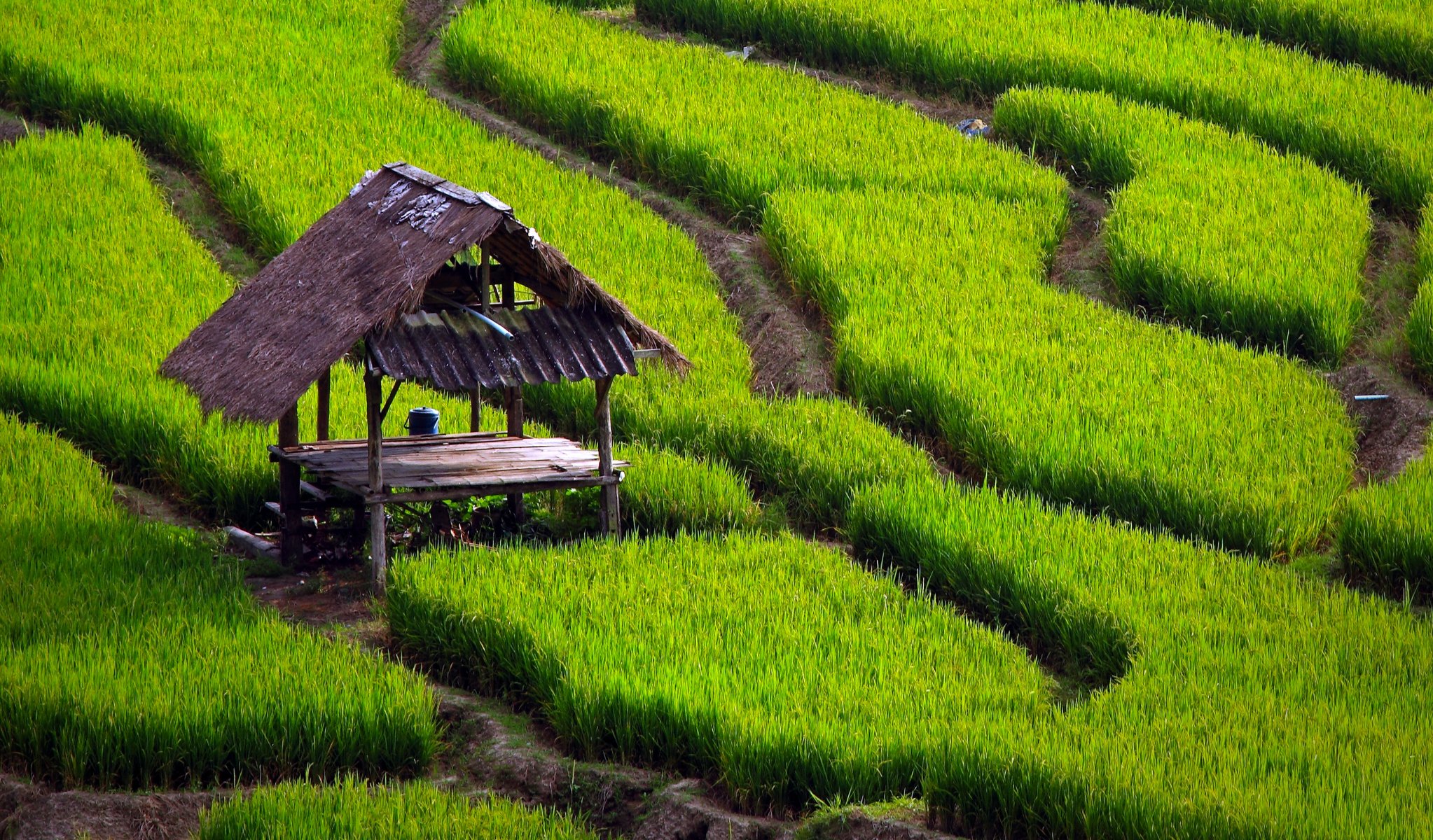 A lined path along a rice field