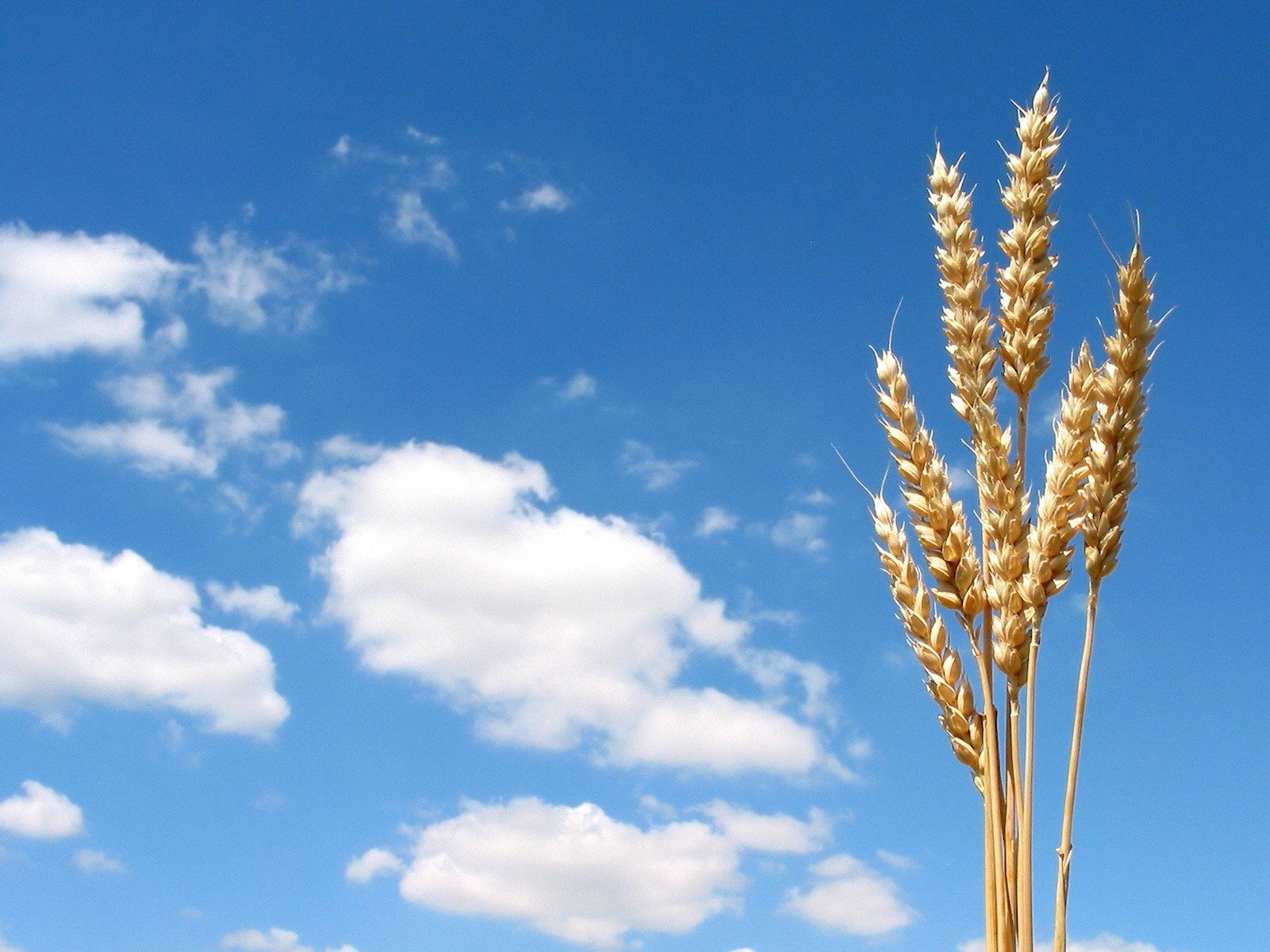 Golden ears on the background of a blue sky with cloudsGolden ears on the background of a blue sky with clouds
