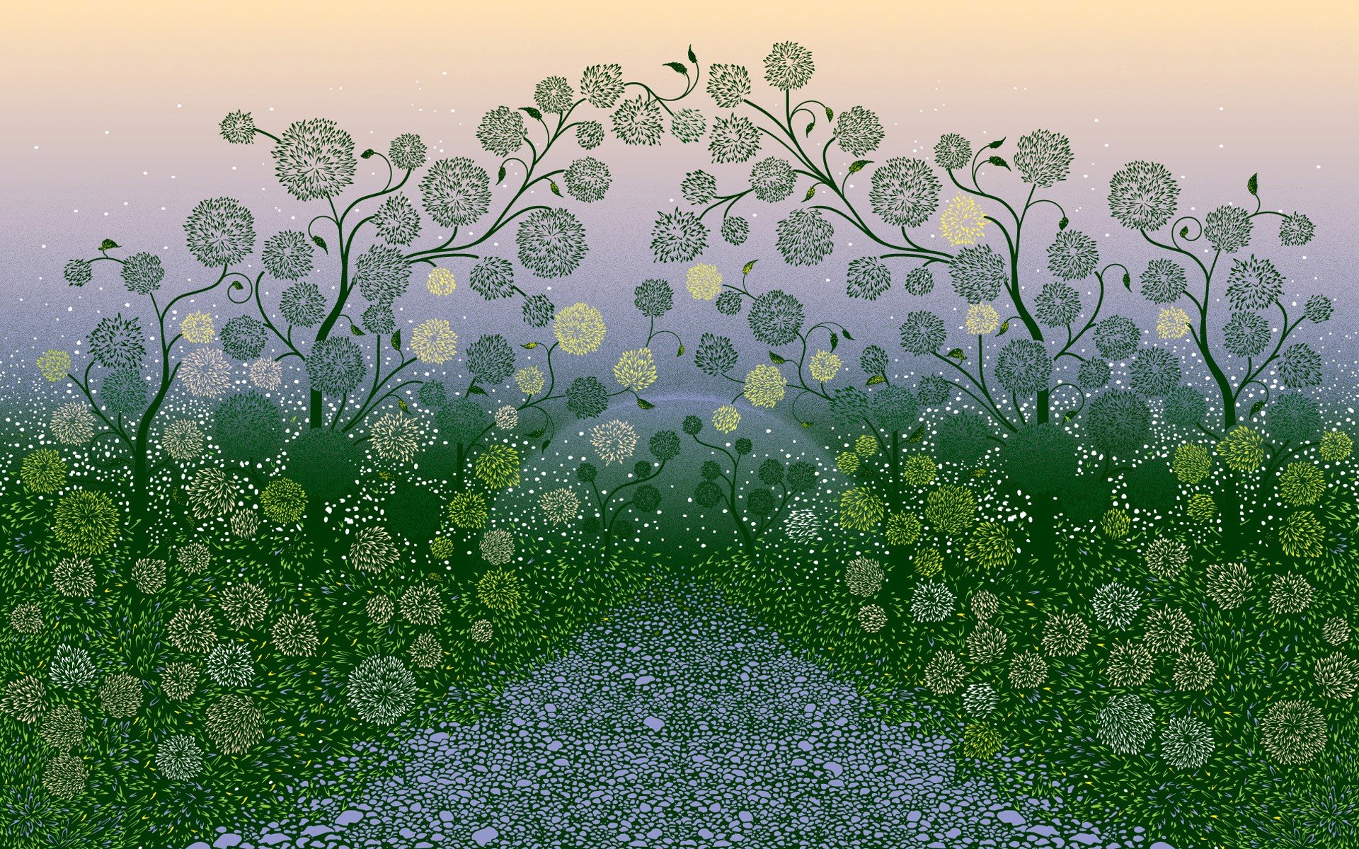 A black and white cat peeks out from behind the plantsA black and white cat peeks out from behind the plants
