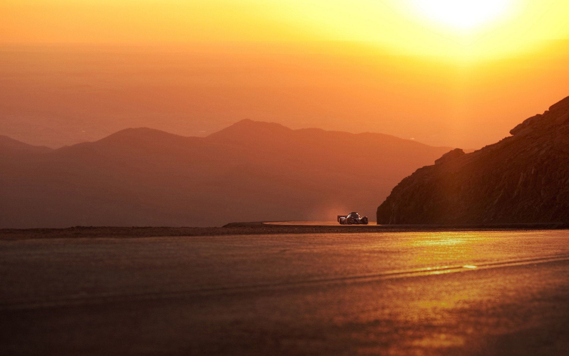 Racing against the background of sunset in the desertRacing against the background of sunset in the desert