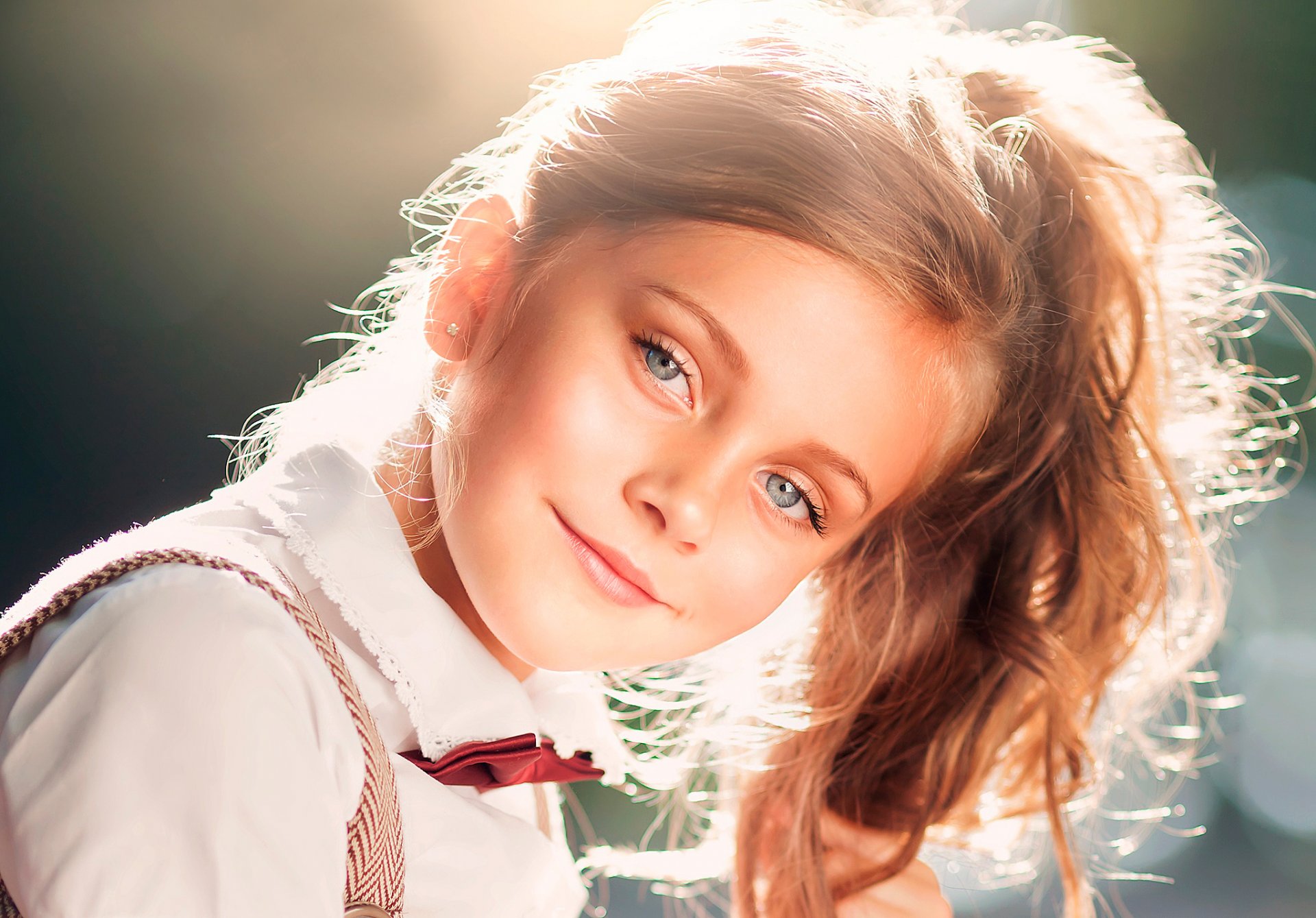 Portrait of a girl with long hair and straight eyesPortrait of a girl with long hair and straight eyes