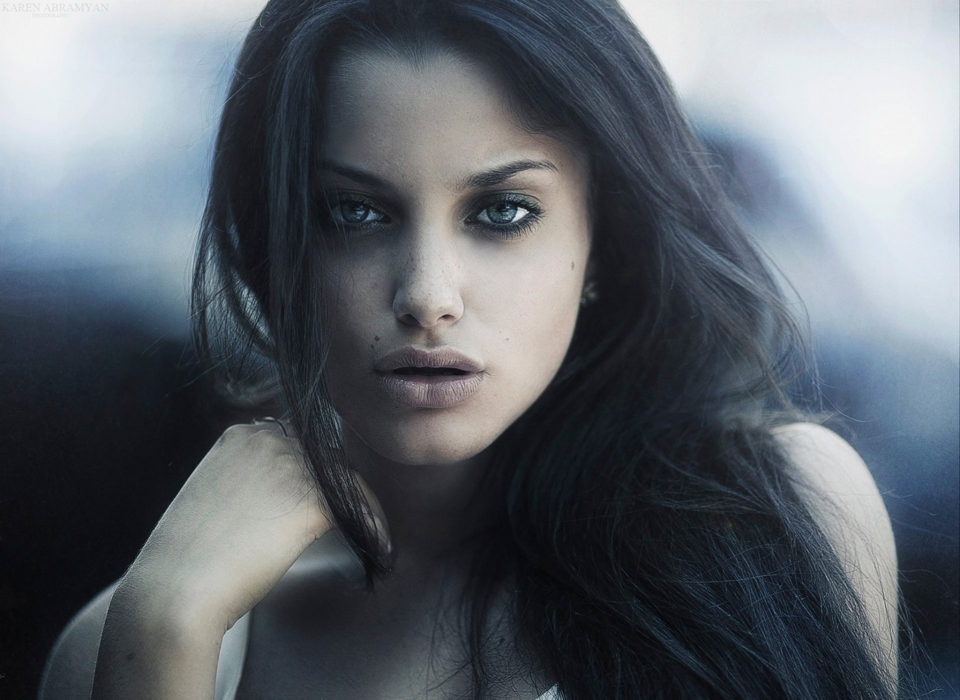 Portrait of a brown-eyed girl on a dark backgroundPortrait of a brown-eyed girl on a dark background