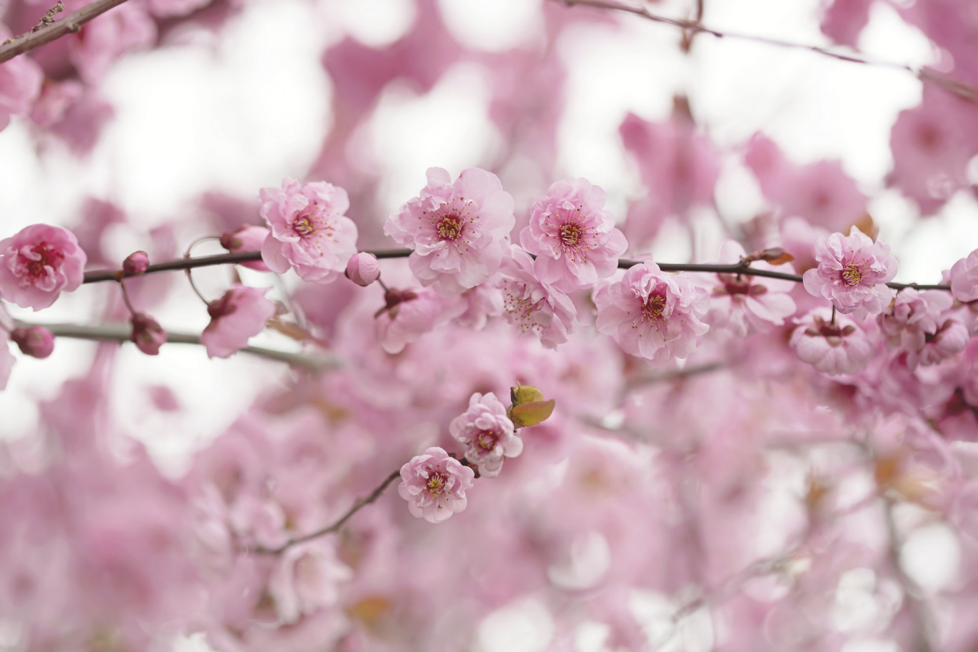 A branch with pink flowers in spring