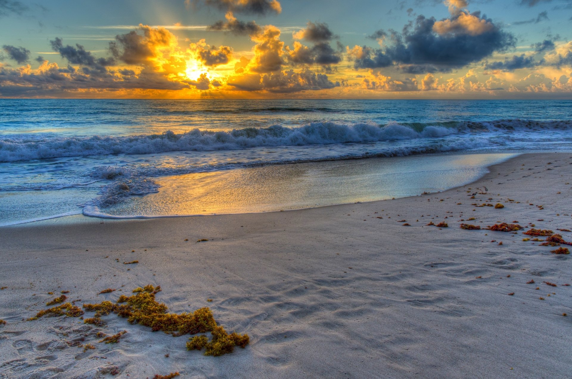 At dawn, the sea waves reflect the rays of the sunAt dawn, the sea waves reflect the rays of the sun