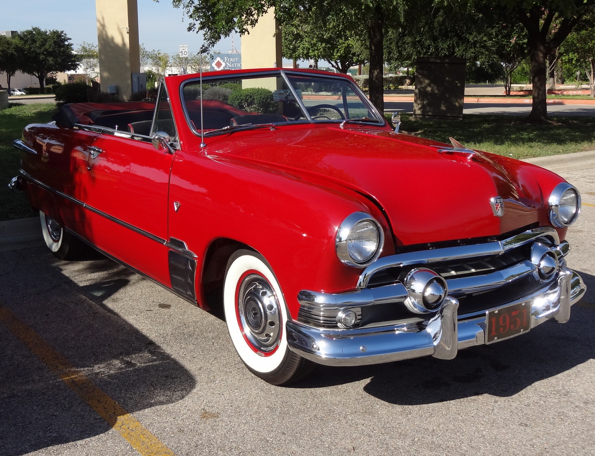 Retro Chevrolet red car on a background of yellow steppe and hills