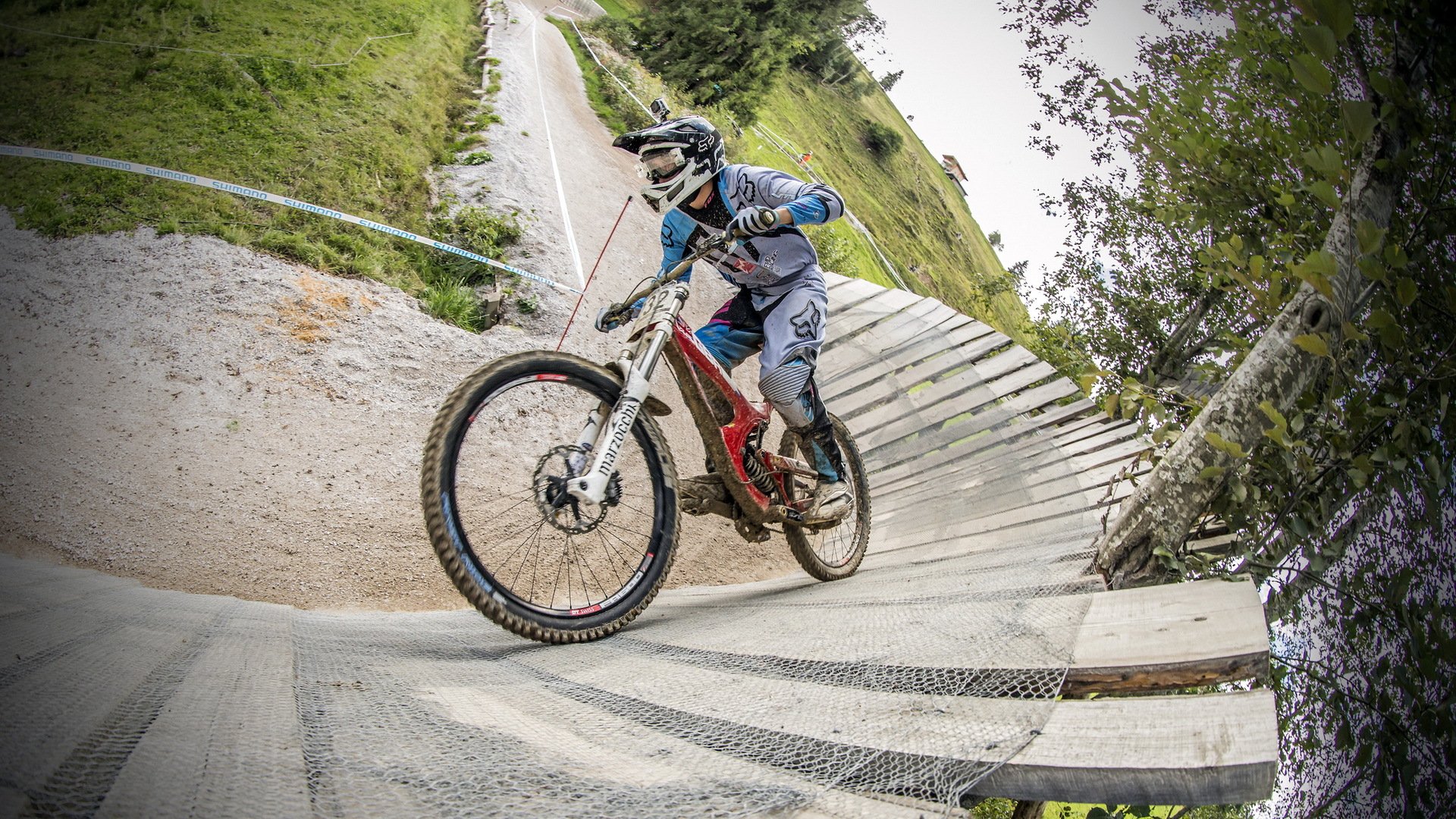 A cyclist in a helmet participates in a race and rides off-roadA cyclist in a helmet participates in a race and rides off-road
