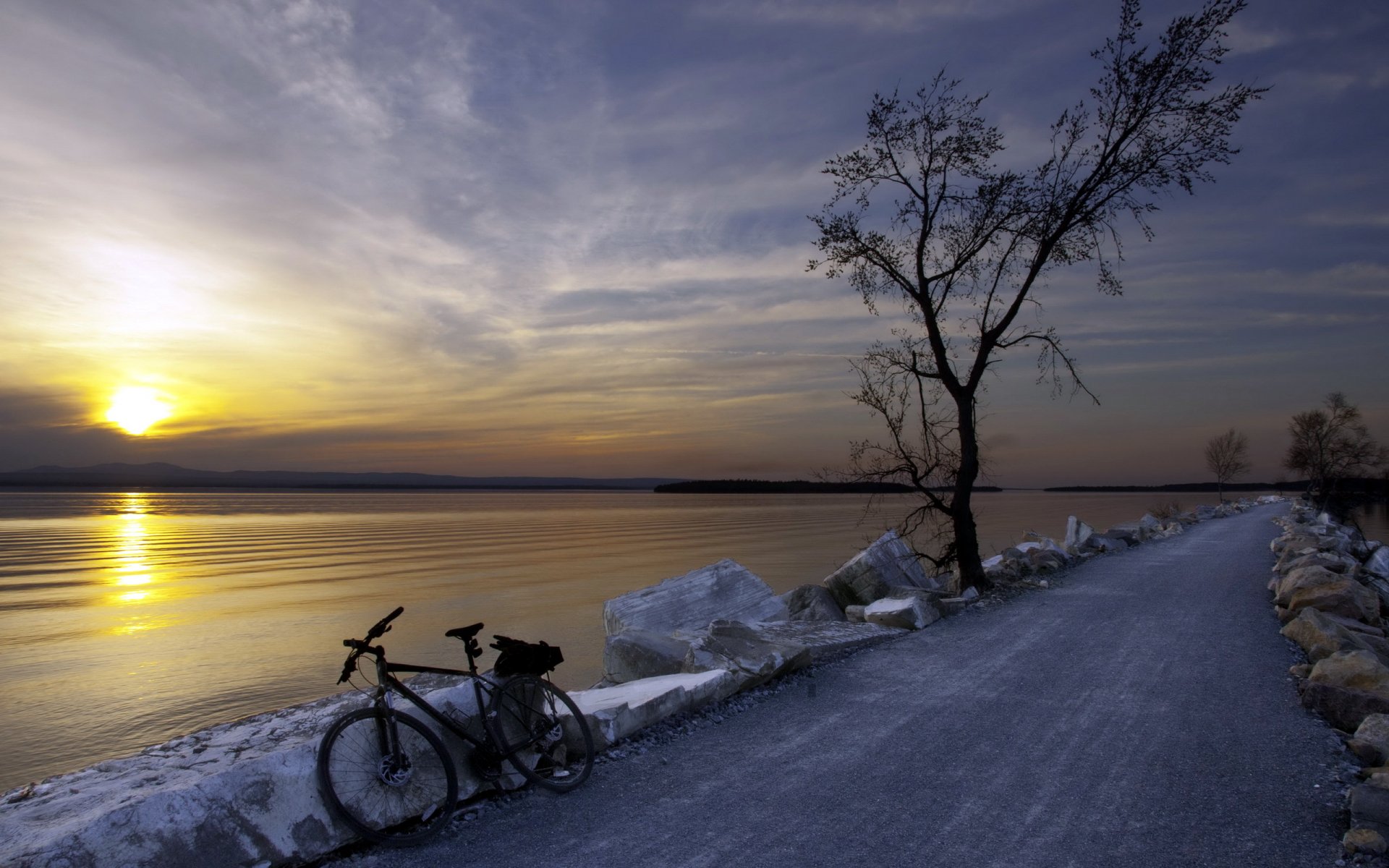 Bicycle with flowers on the background of the city evening roadBicycle with flowers on the background of the city evening road