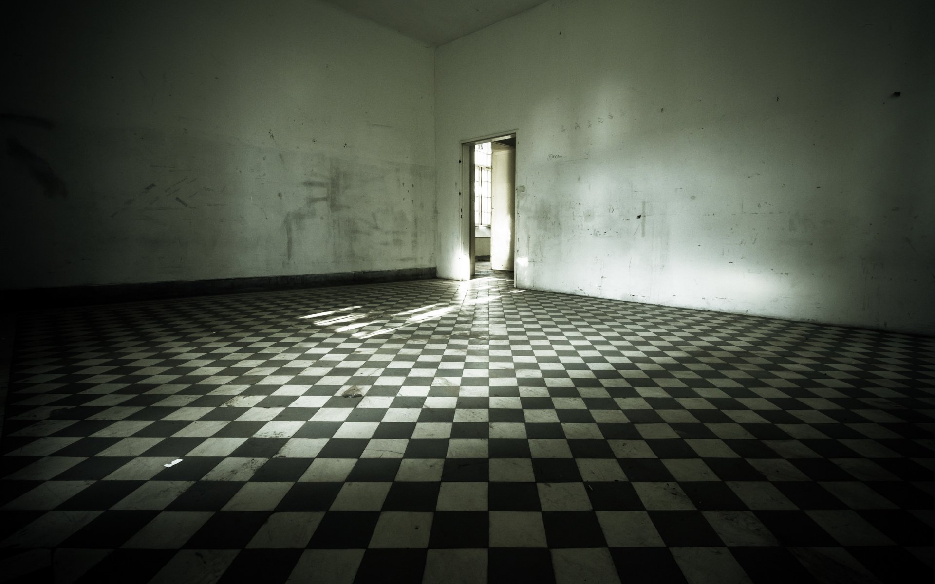 A room with unfinished repairs and a strange inscription on the doorA room with unfinished repairs and a strange inscription on the door