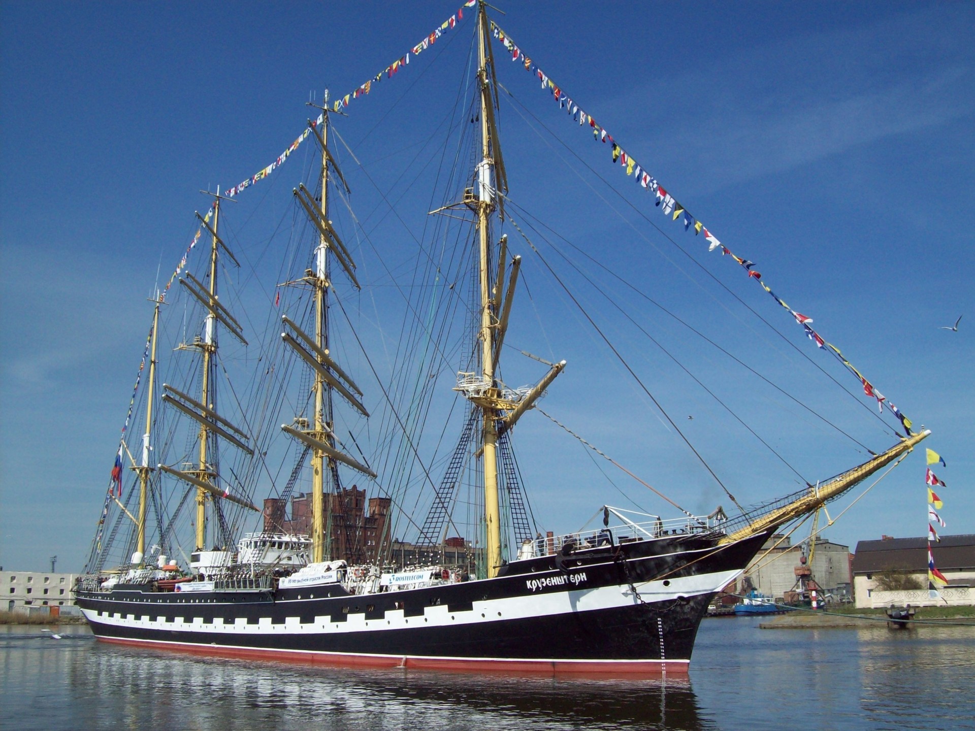 A ship is sailing against the background of storm cloudsA ship is sailing against the background of storm clouds