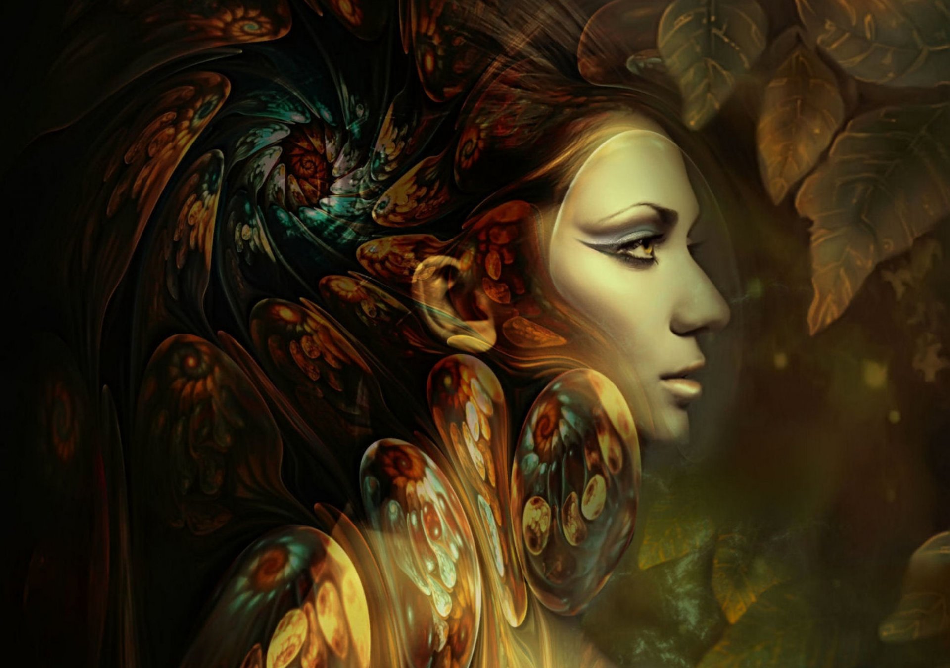 A girl with wings and a wreath on a white backgroundA girl with wings and a wreath on a white background