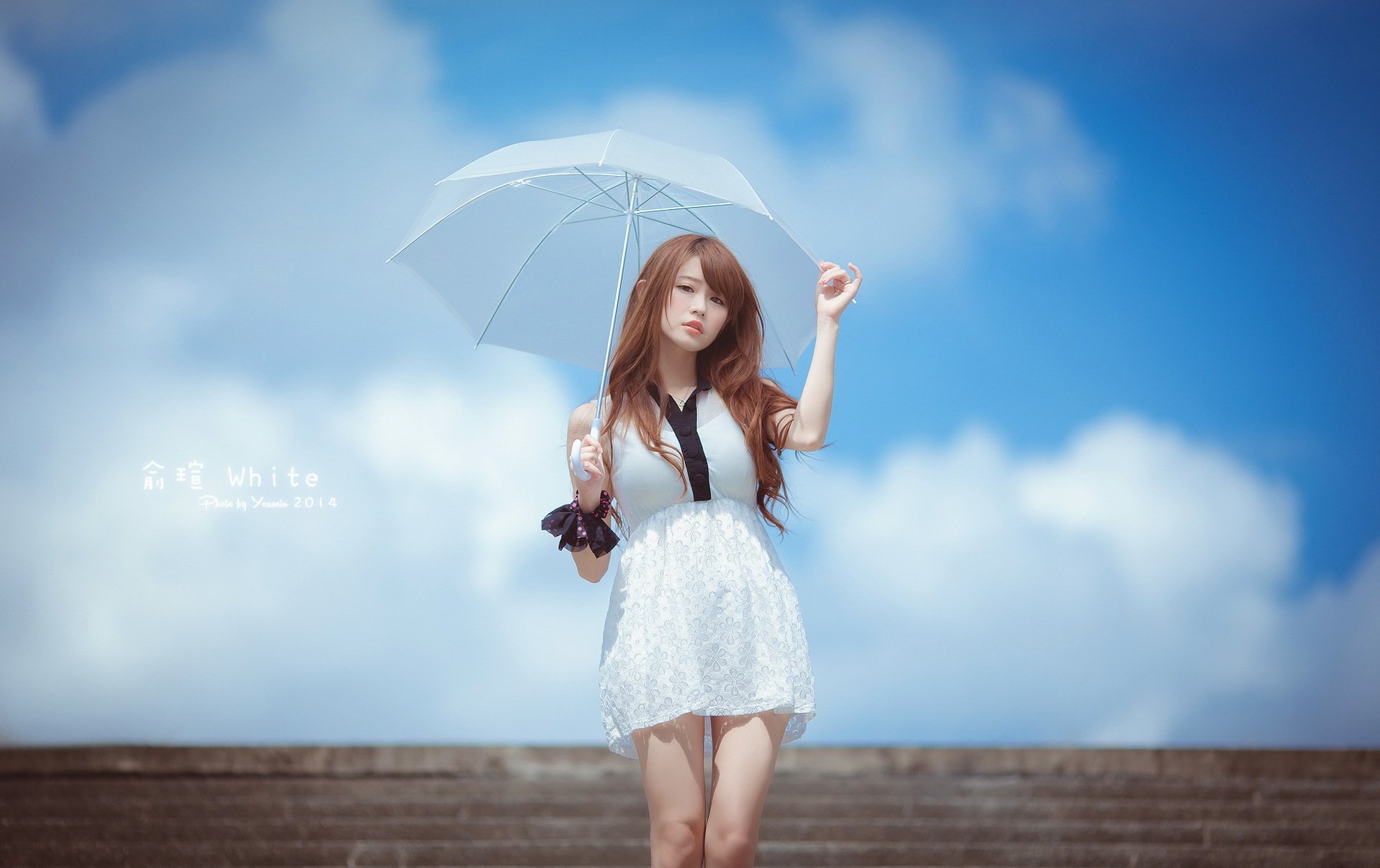 Asian - style girl with an umbrella on her hands , elegantAsian - style girl with an umbrella on her hands , elegant