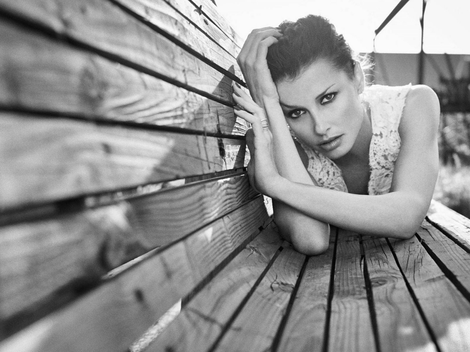 Black and white photo of a girl with a back near the showcaseBlack and white photo of a girl with a back near the showcase