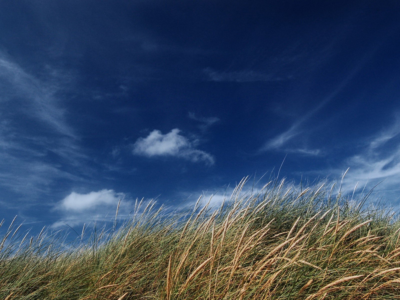 The trace of the plane in the blue sky among the clouds