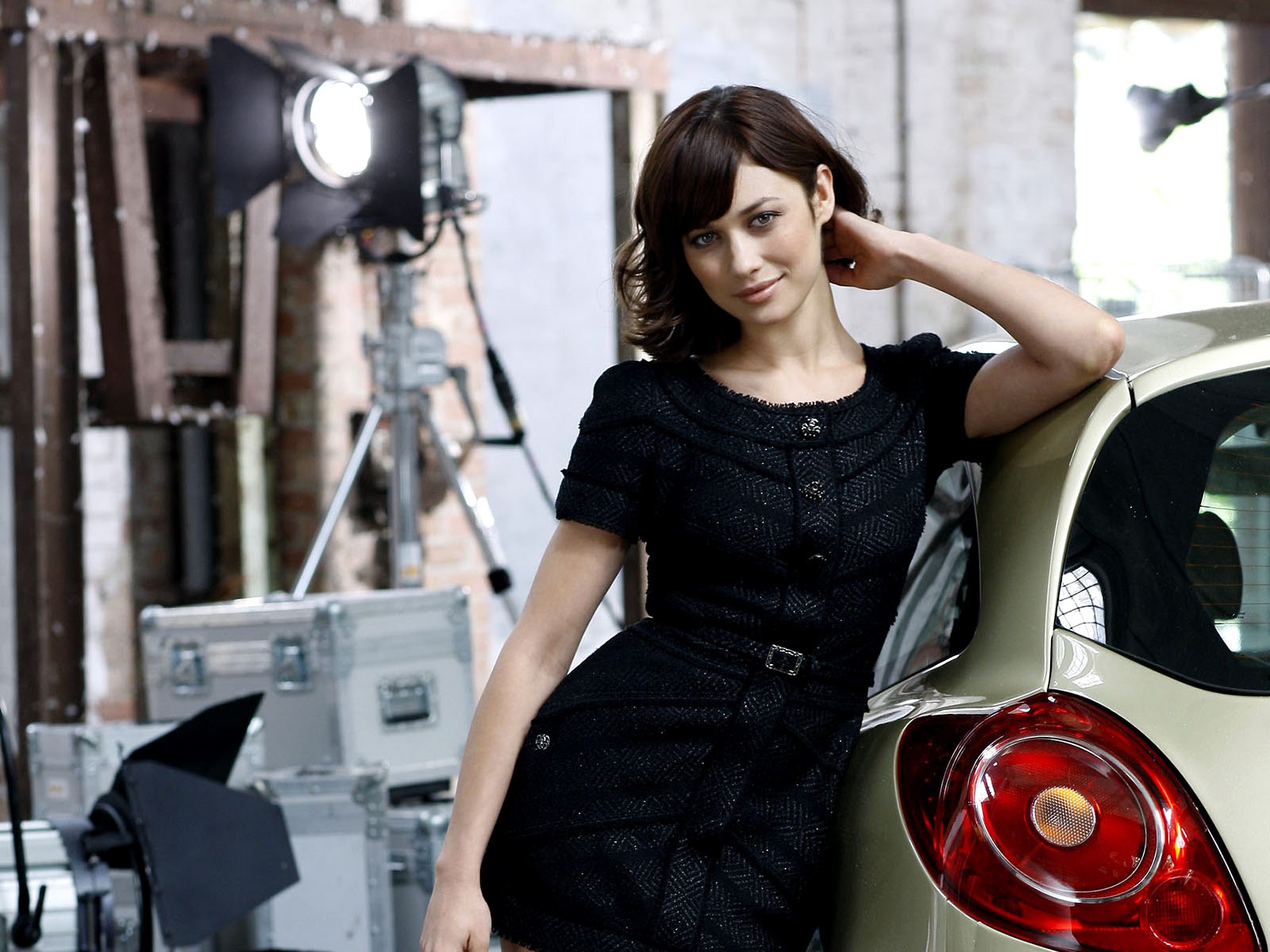 Olga Kurylenko is standing near the car