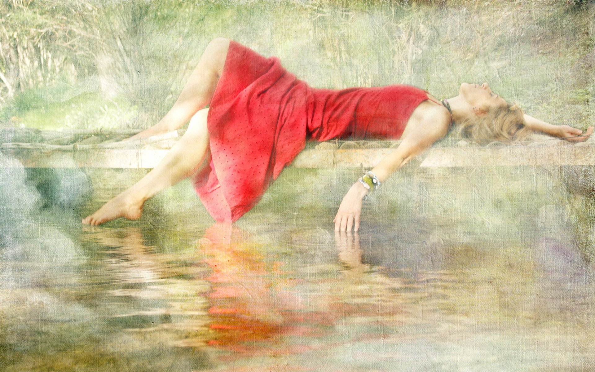 Reflection of light in a drop of water on the pierReflection of light in a drop of water on the pier