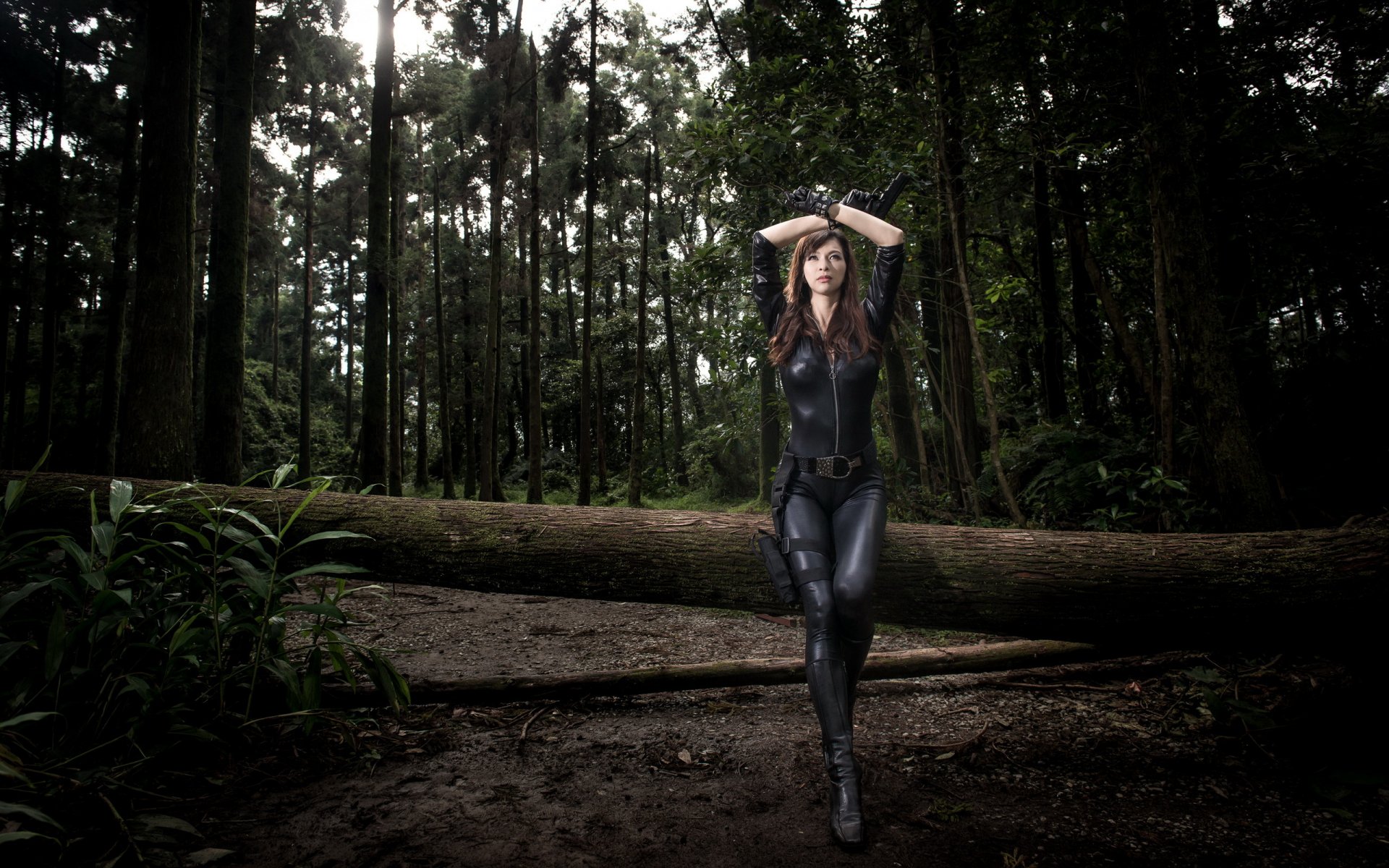 A girl on a motorcycle with a gun in her hands shotA girl on a motorcycle with a gun in her hands shot