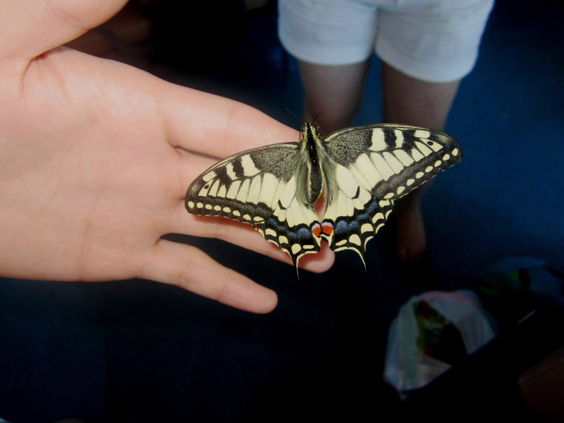 A beautiful butterfly on a man's hand