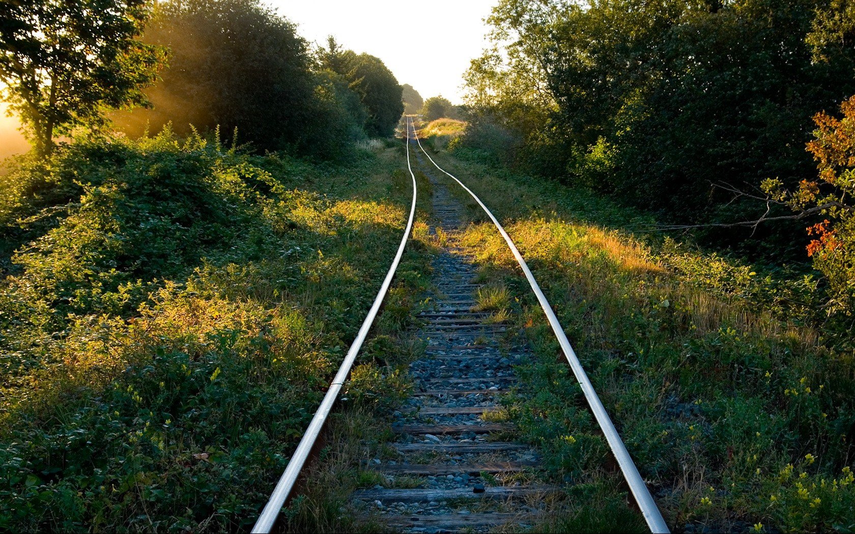 The sun's rays fall into the arch and onto the railwayThe sun's rays fall into the arch and onto the railway