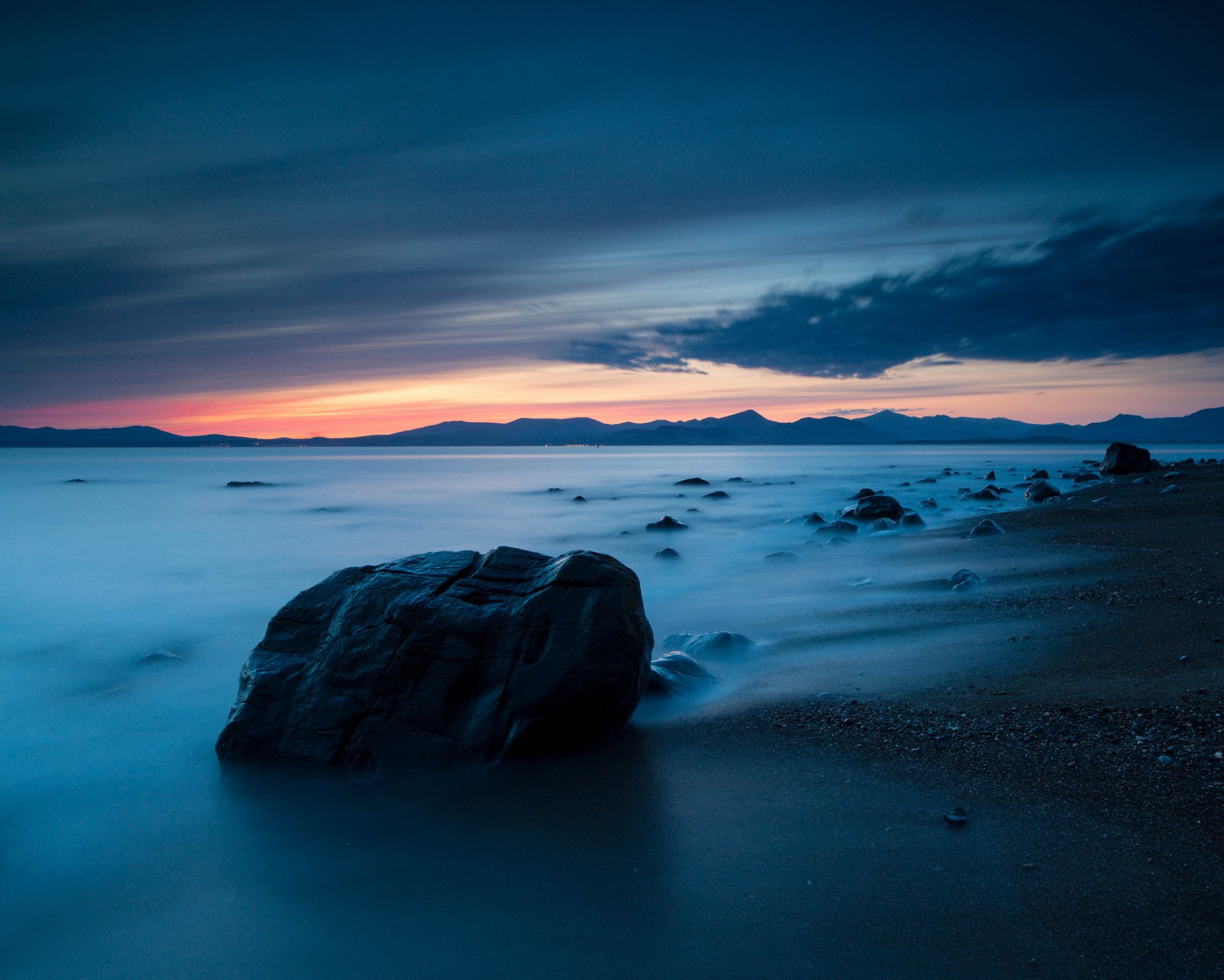 A rural road along an old wooden fence, the outlines of houses and trees drowning in fog