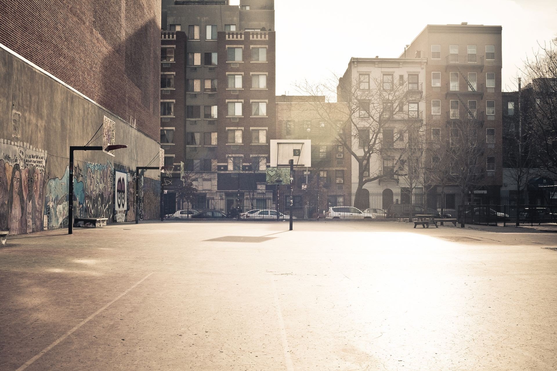 Basketball court under the bright sun
