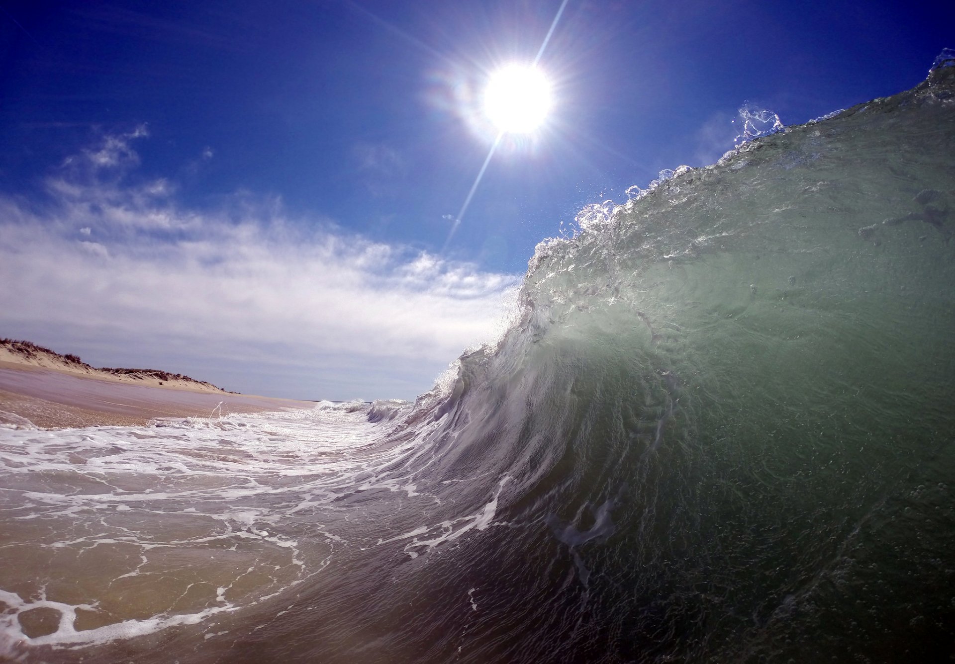 Waves are beating on the shore