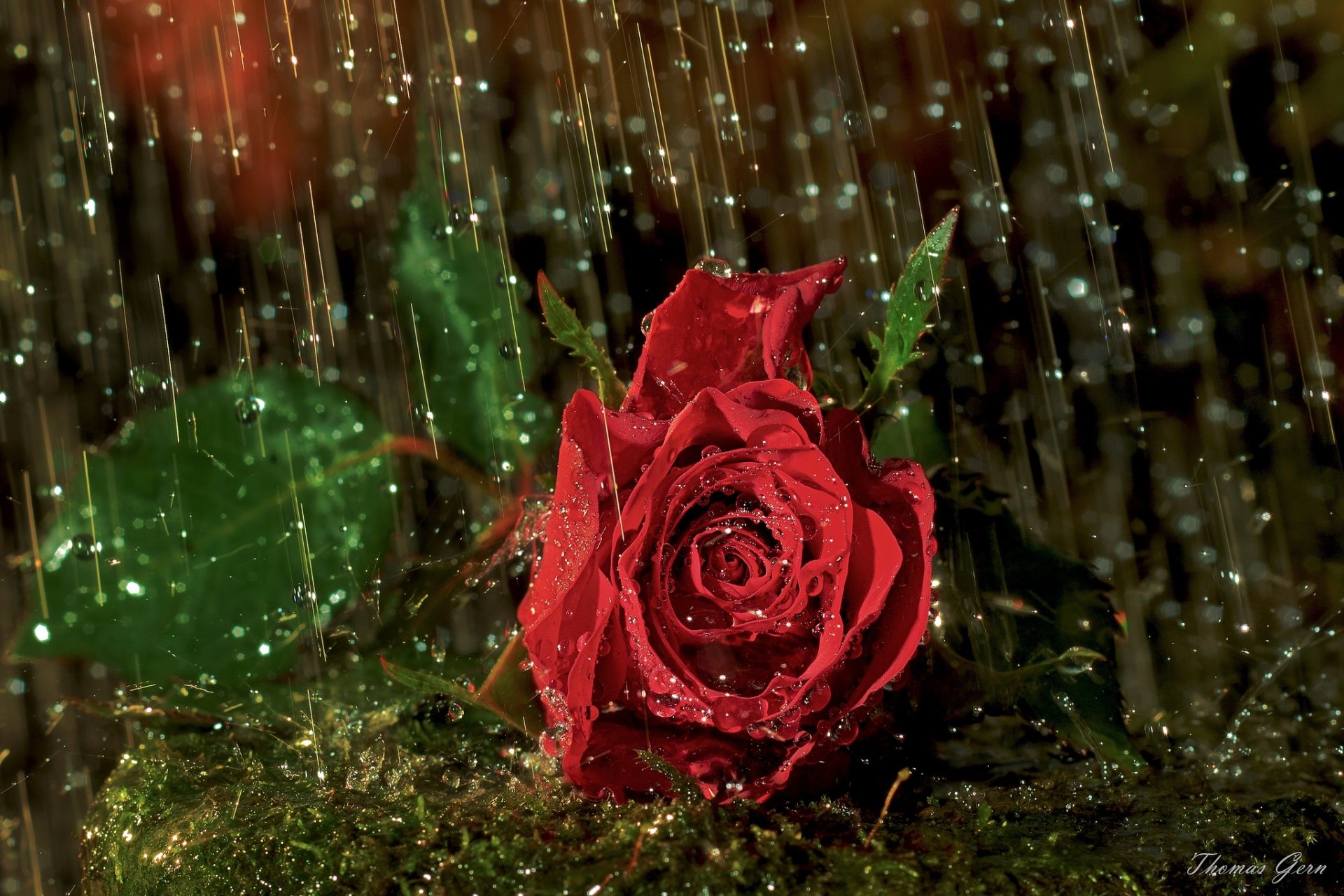 The dog runs through the water, drops of water are dripping from the muzzle and tongue