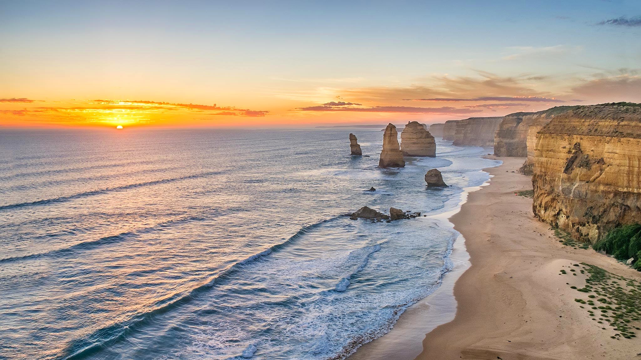 The pink sky is reflected in the waters of the calm seaThe pink sky is reflected in the waters of the calm sea
