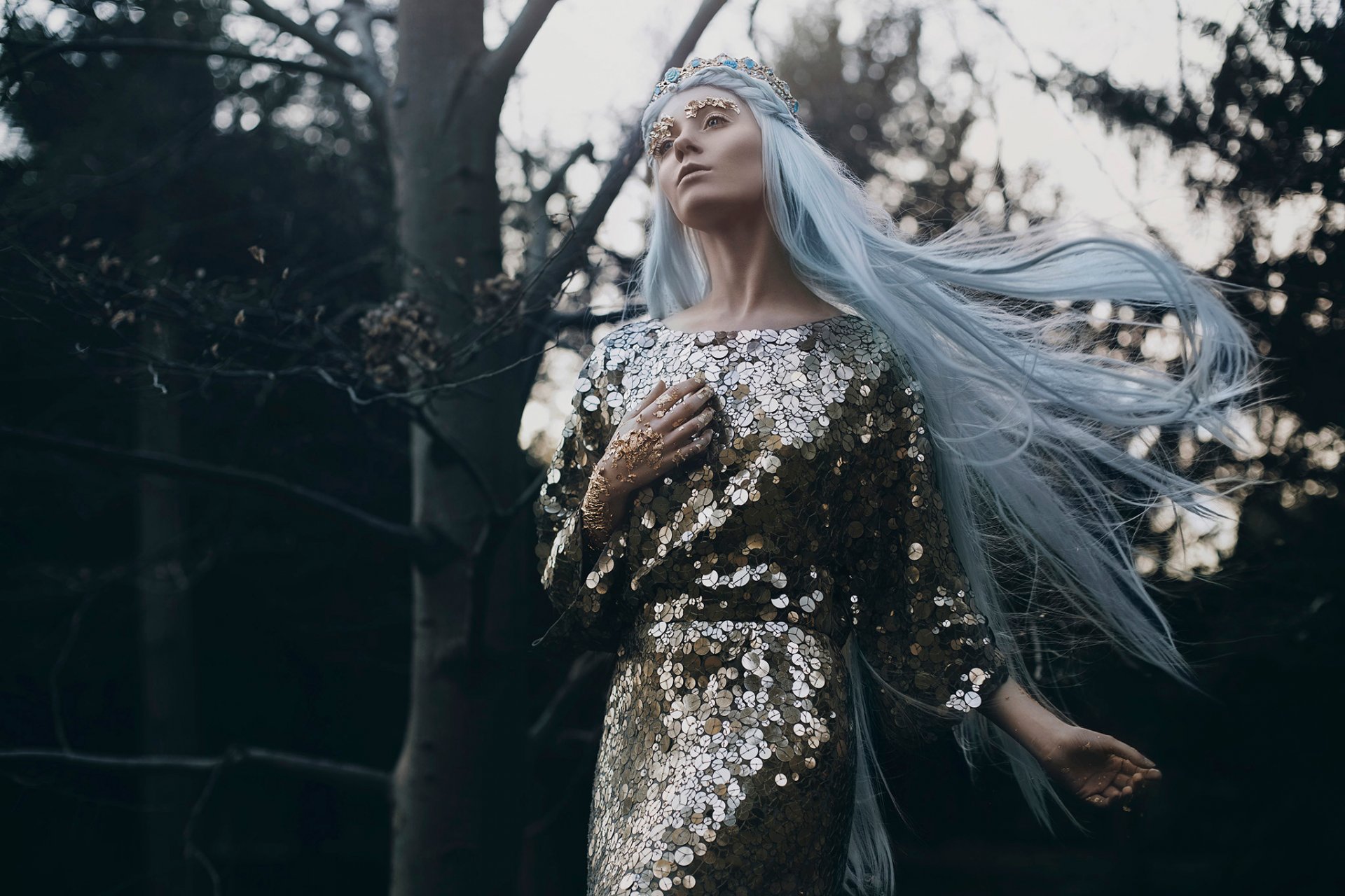 Art in the form of a girl whose long dress looks like flower petalsArt in the form of a girl whose long dress looks like flower petals