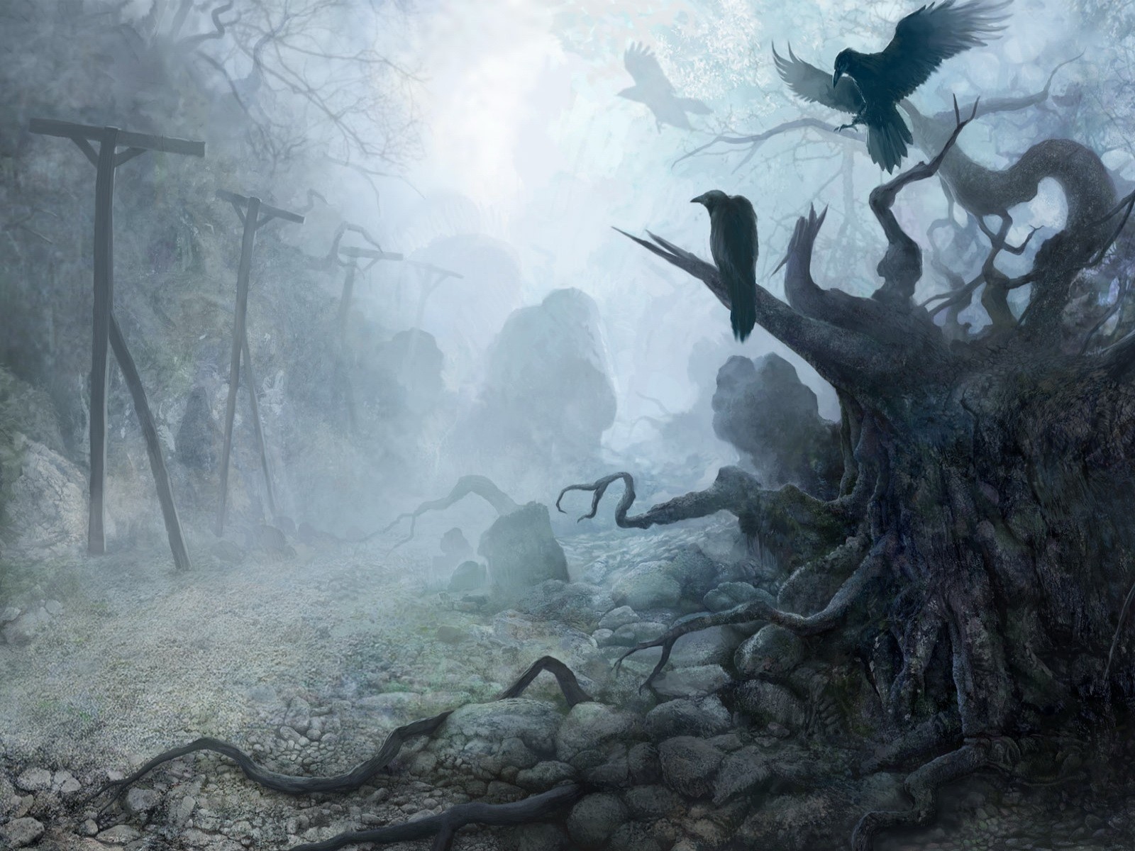 The sun's rays illuminate the waterfall among the stonesThe sun's rays illuminate the waterfall among the stones