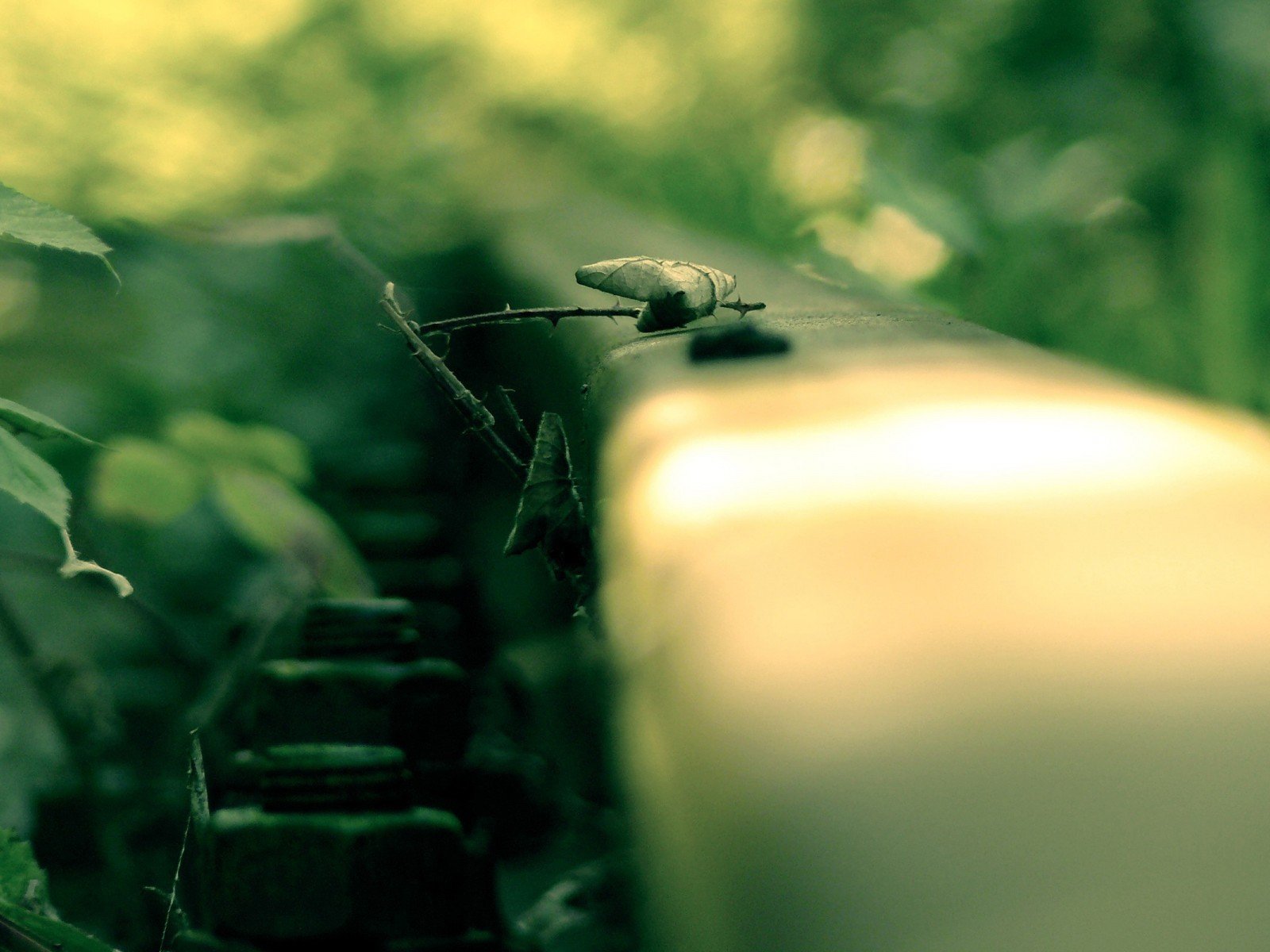 Rails in the grass. macro shooting of tracks and railsRails in the grass. Macro shooting of tracks and rails