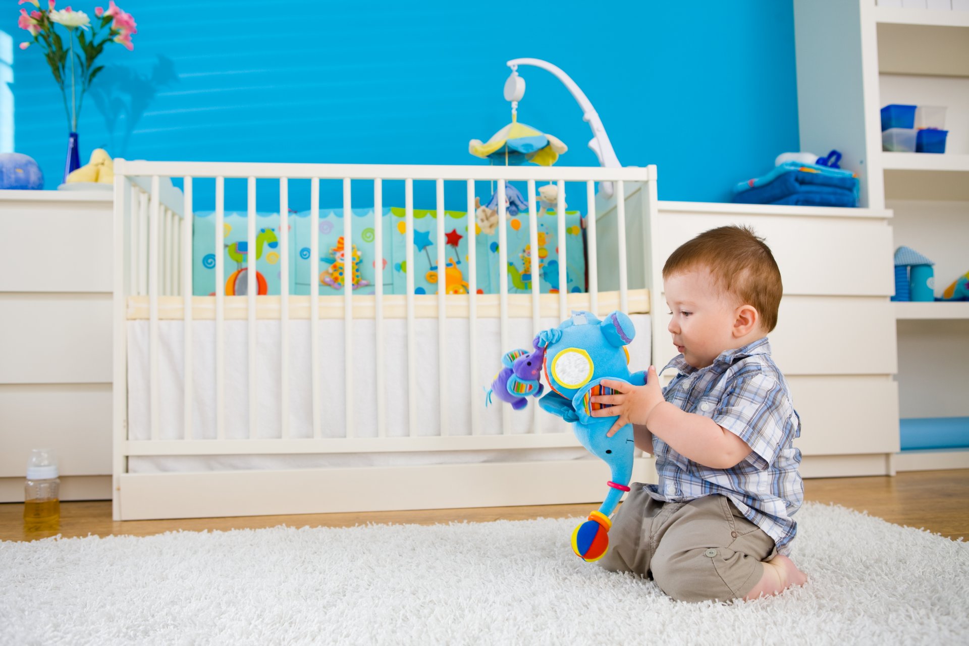 A little boy on a white carpet with an elephant in his armsA little boy on a white carpet with an elephant in his arms