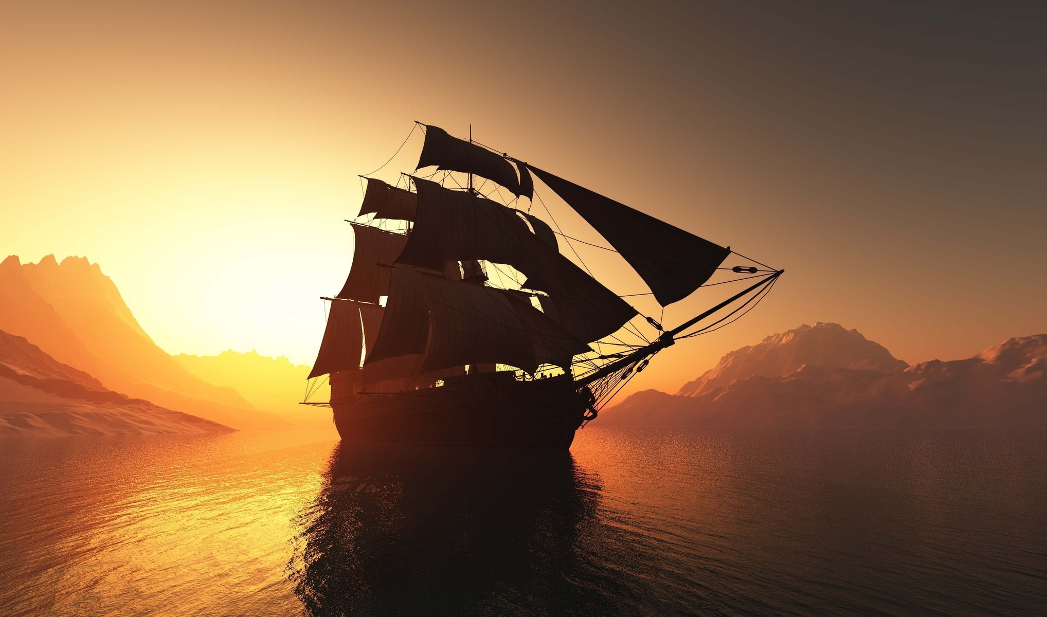 Photo of sails on the water against the background of sunsetPhoto of sails on the water against the background of sunset