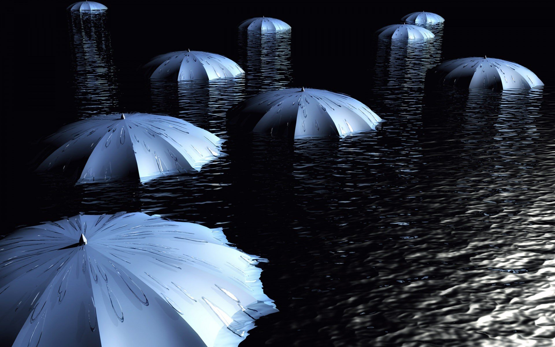 A man with an umbrella walks on a rope in the rain