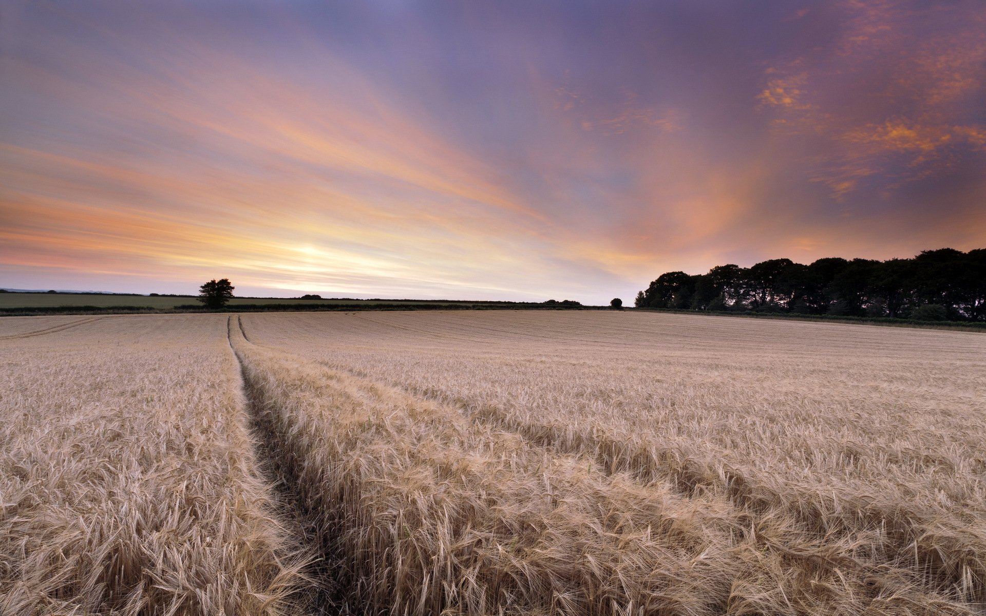A field and a bench with a tower were photographed at sunsetA field and a bench with a tower were photographed at sunset