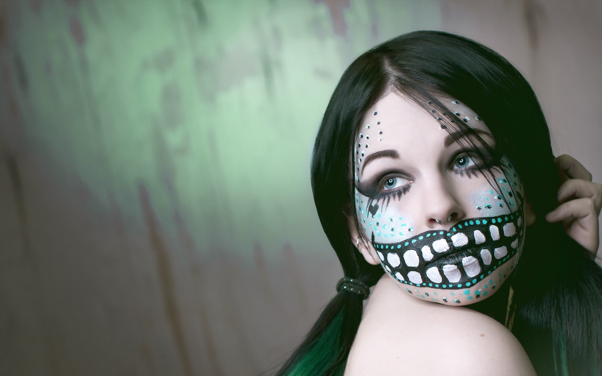 A girl with an unusual make-up in the style of the jokerA girl with an unusual make-up in the style of the Joker