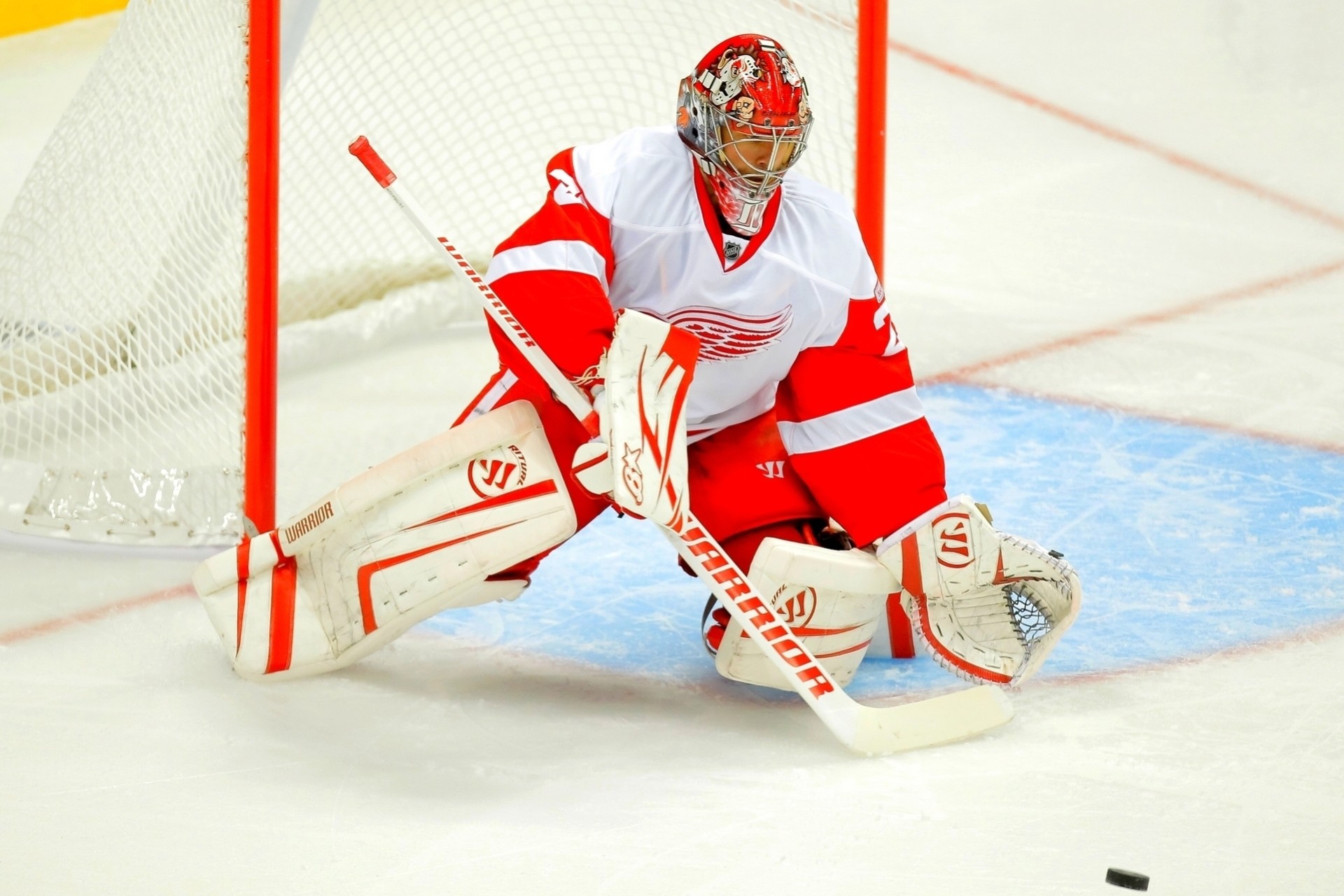 The goalkeeper catches the puck during a hockey matchThe goalkeeper catches the puck during a hockey match