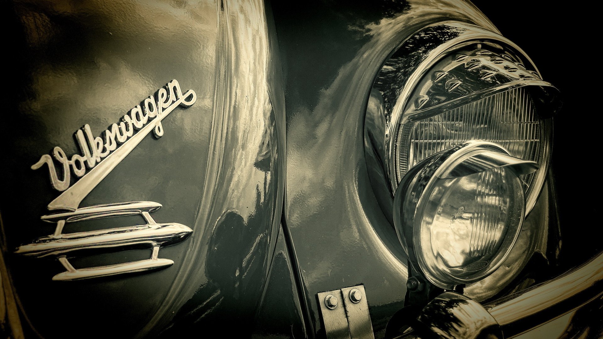The yellow volksfagen stopped at an abandoned buildingThe yellow Volksfagen stopped at an abandoned building