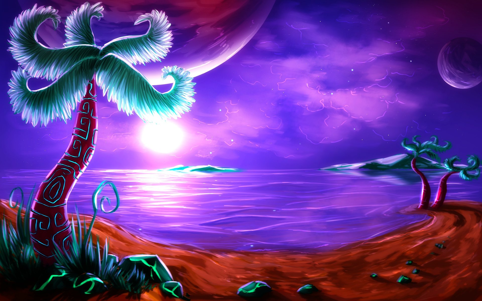 Sunset drawing on the seashore