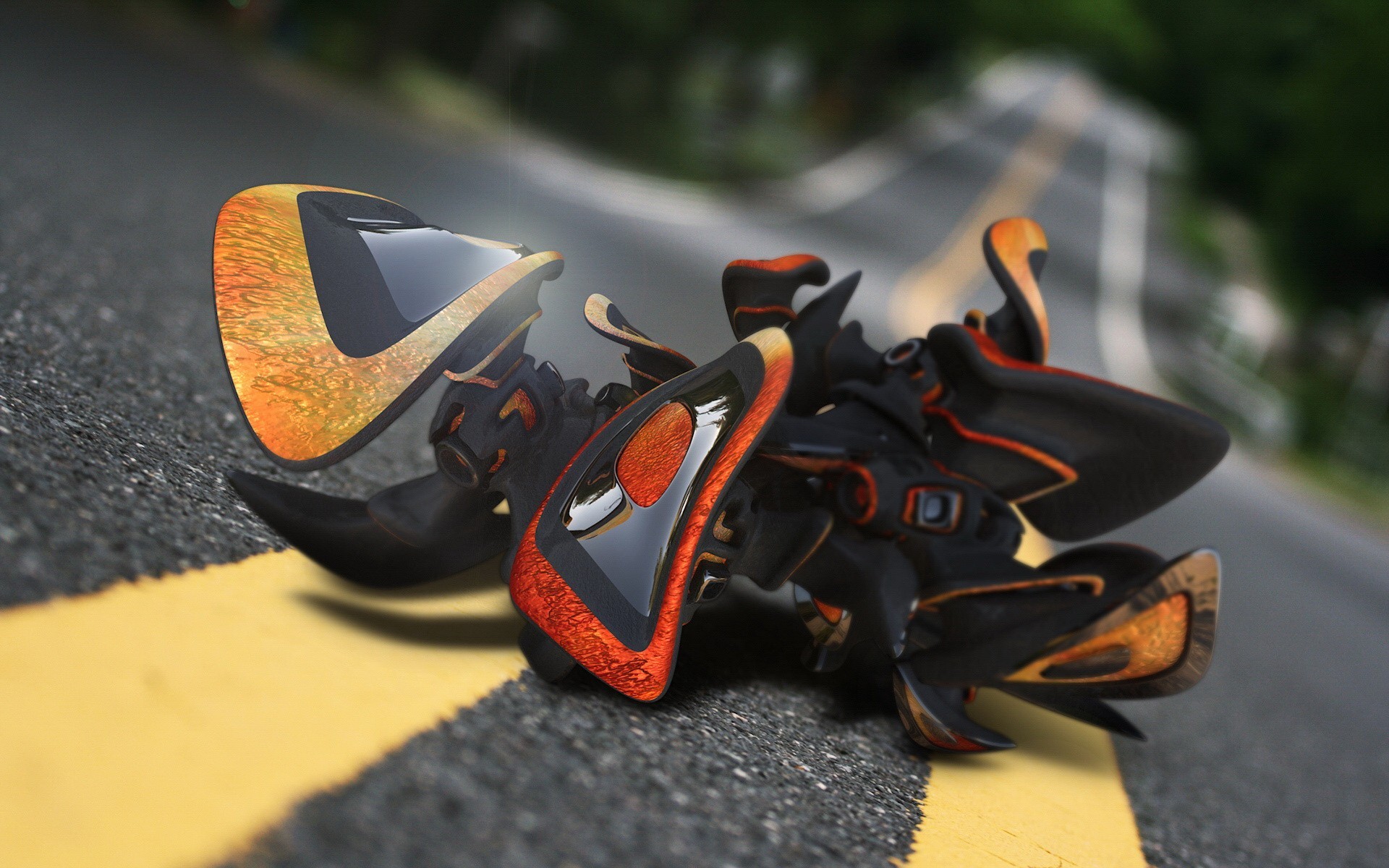 The road to the city against the background of another planetThe road to the city against the background of another planet