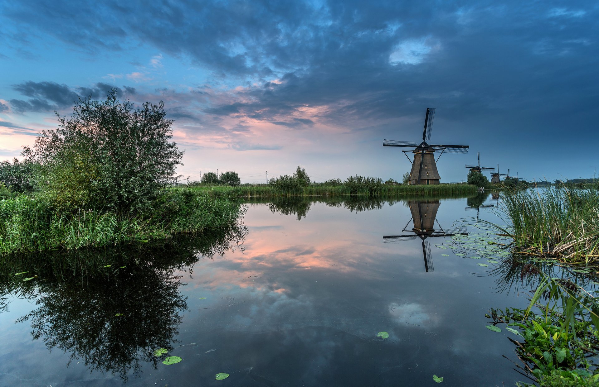 Three horses are standing on the bank of a watering hole in the rays of the setting sunThree horses are standing on the bank of a watering hole in the rays of the setting sun