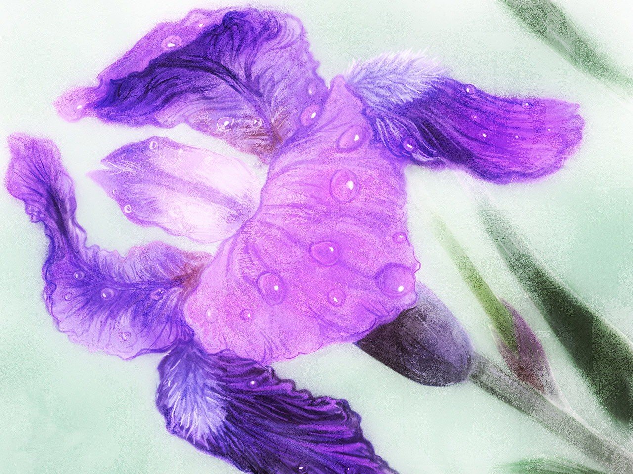 Drawing of an iris with water droplets on the petalsDrawing of an iris with water droplets on the petals