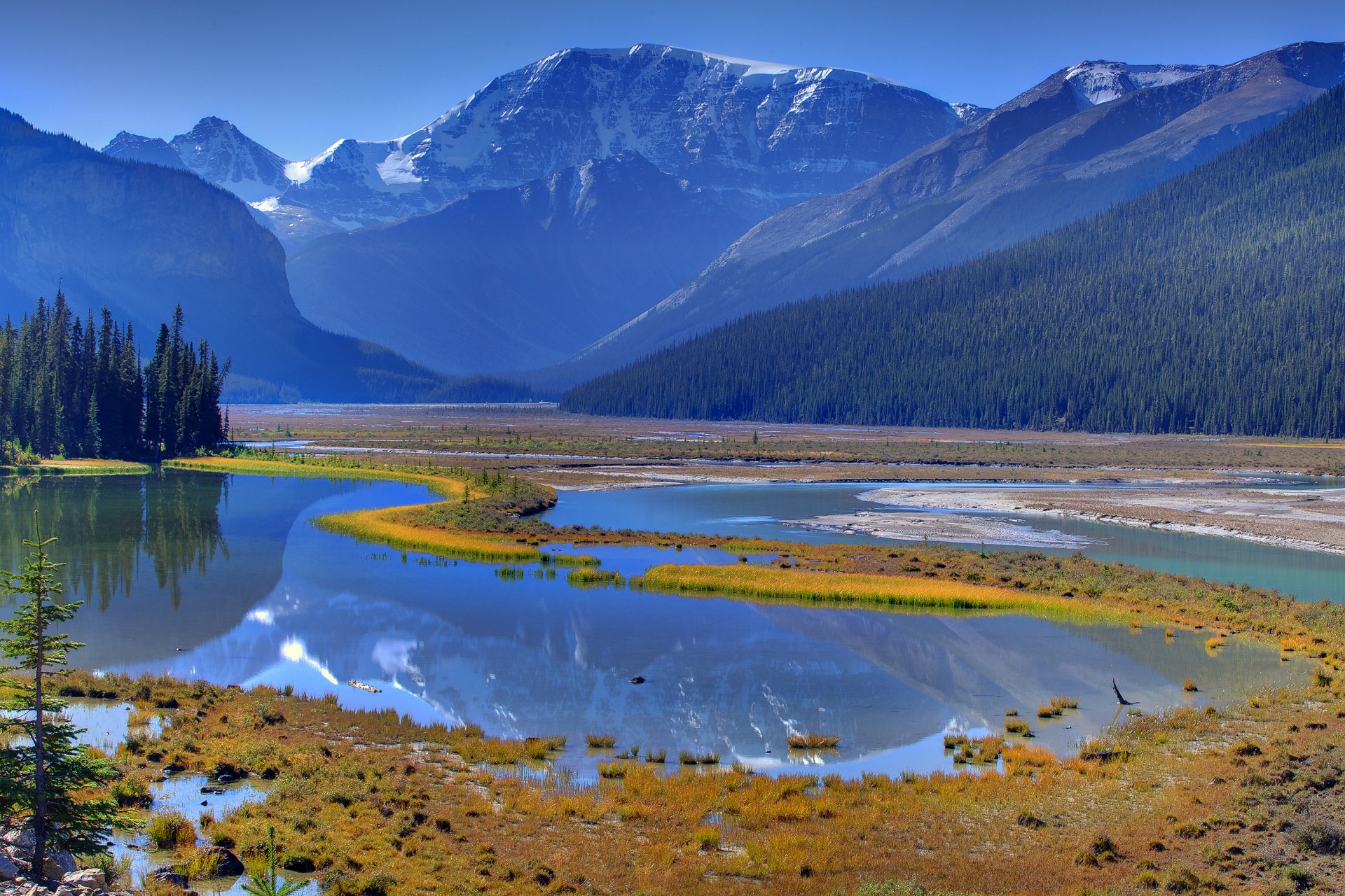 A river in the mountains, in which the forest is reflectedA river in the mountains, in which the forest is reflected