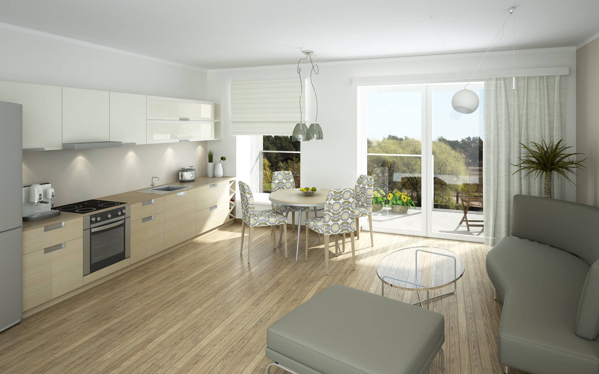 White kitchen, wooden Floor