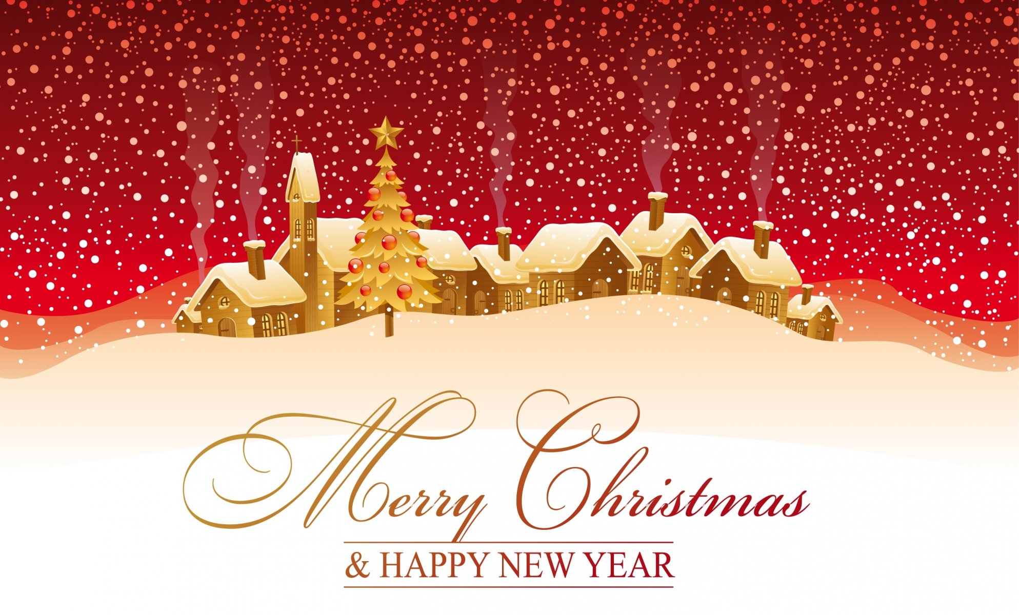 Drawing of winter with houses with the inscription happy new yearDrawing of winter with houses with the inscription happy new year