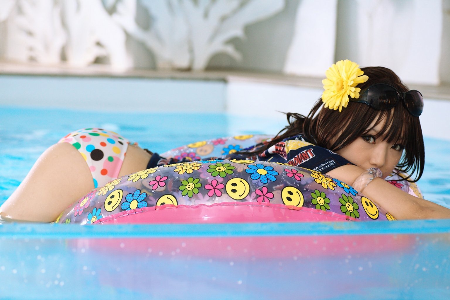 A brown-haired woman with pigtails in a white jumper, propping her chin with her hand on a blurry backgroundA brown-haired woman with pigtails in a white jumper, propping her chin with her hand on a blurry background