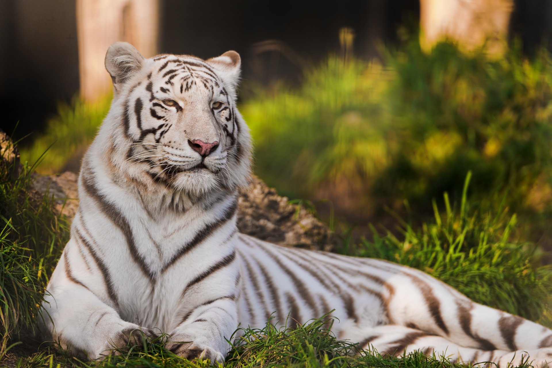 An art of an elf guy accompanied by animals in the form of a white tiger and a black wolf with red eyes