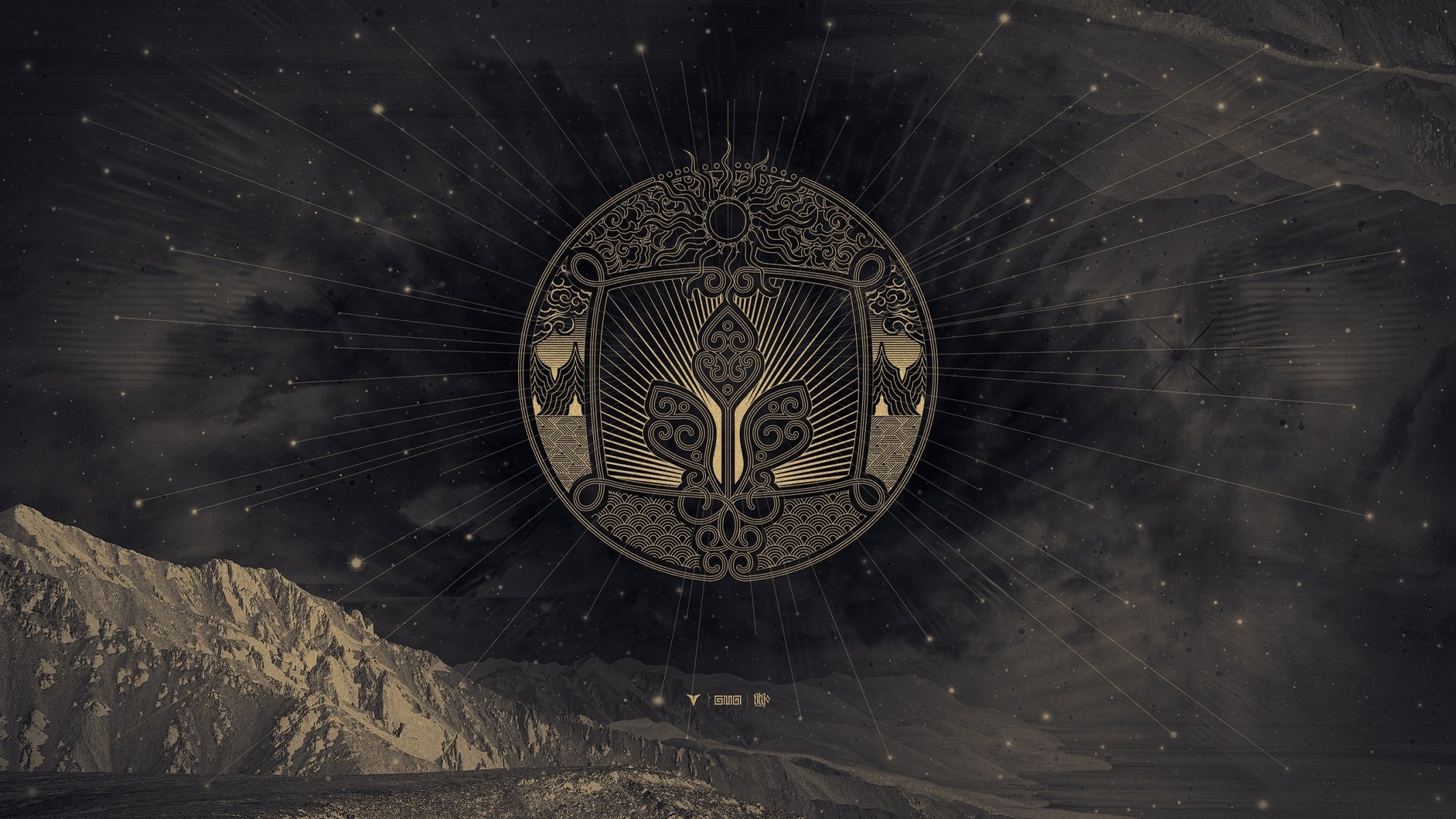 The scheme of the emblem with a pattern and a sign of the sunThe scheme of the emblem with a pattern and a sign of the sun