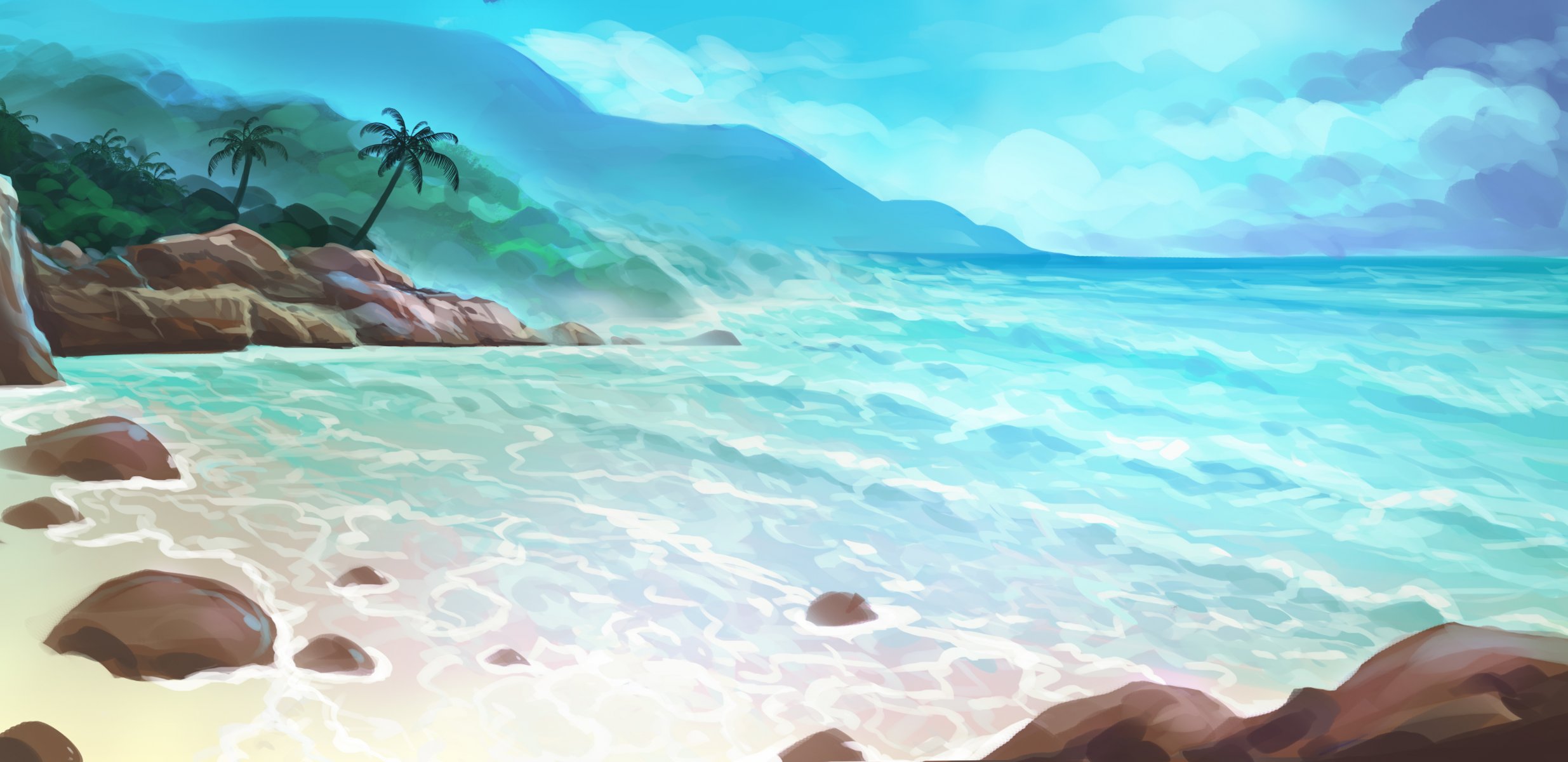 Tags:art, painted landscape, palm, sea, island, summer